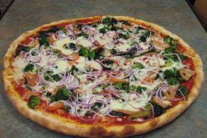Mozzarella, spinach, broccoli, mushrooms, tomatoes, onions and green peppers